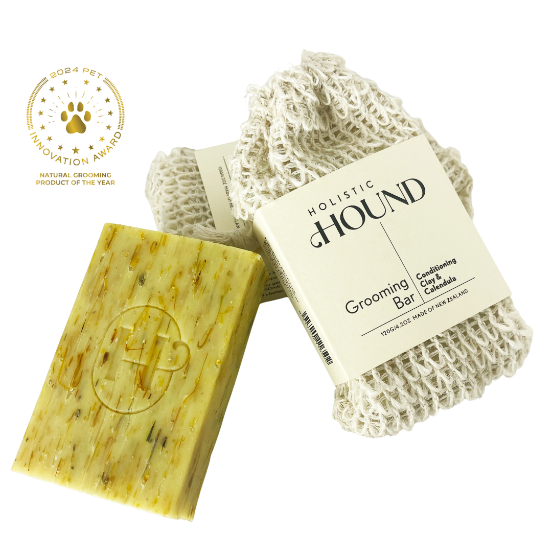 Give your hound the love they deserve with our gentle Grooming Bar, a natural blend designed for all fur types. Infused with Matauri Bay Clay, Shea Butter, Manuka Honey, and Calendula, it lifts dirt and odours while soothing itchy skin and hot spots, leaving your pup refreshed, relaxed, and smelling wonderful.